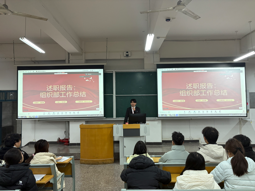 风起扬帆正当时,凝心聚力再出发。立足工作质效精进根本要求,锚定团队向心力凝聚核心举措,为助力学院学生会工作行稳致远,12月23日,人工智能与信息技术学院2025年学生会述职大会于郑州校区教C102顺利召开。开封校区相关人员于F410以线上形式全程参会。本次会议由杨瑜琼主持,党总支副书记杨帆、全体学生会成员参会。