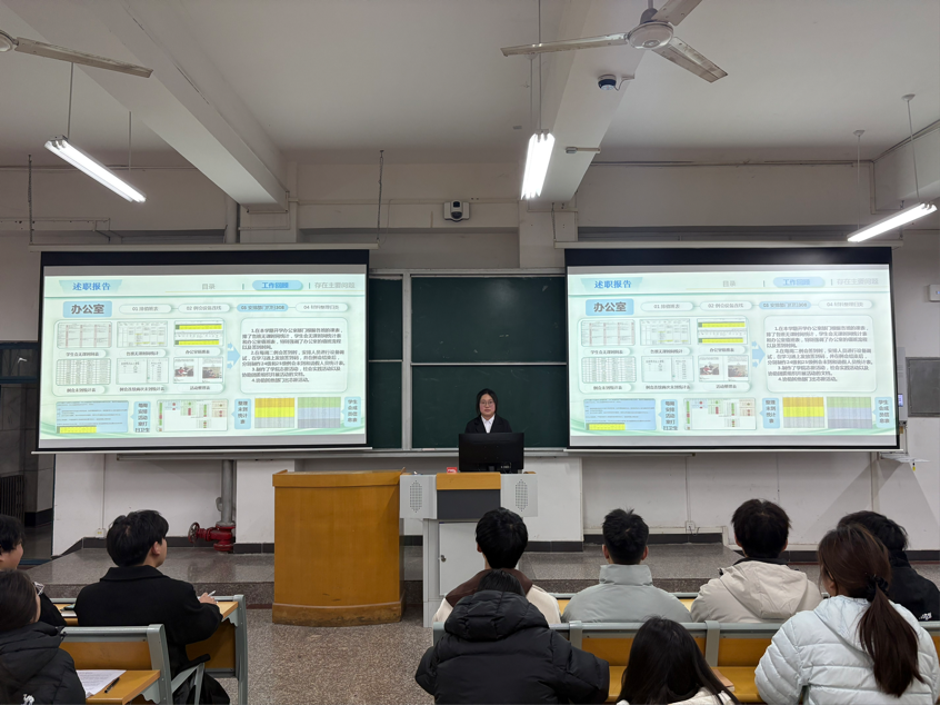 会议伊始,各部门干部依次登台,就分管部门工作展开专题汇报。他们既对过去一年的工作实绩进行系统性复盘梳理,也对推进过程中暴露的短板弱项予以深刻剖析,同时立足学院发展大局,对下一阶段工作路径作出前瞻性规划。