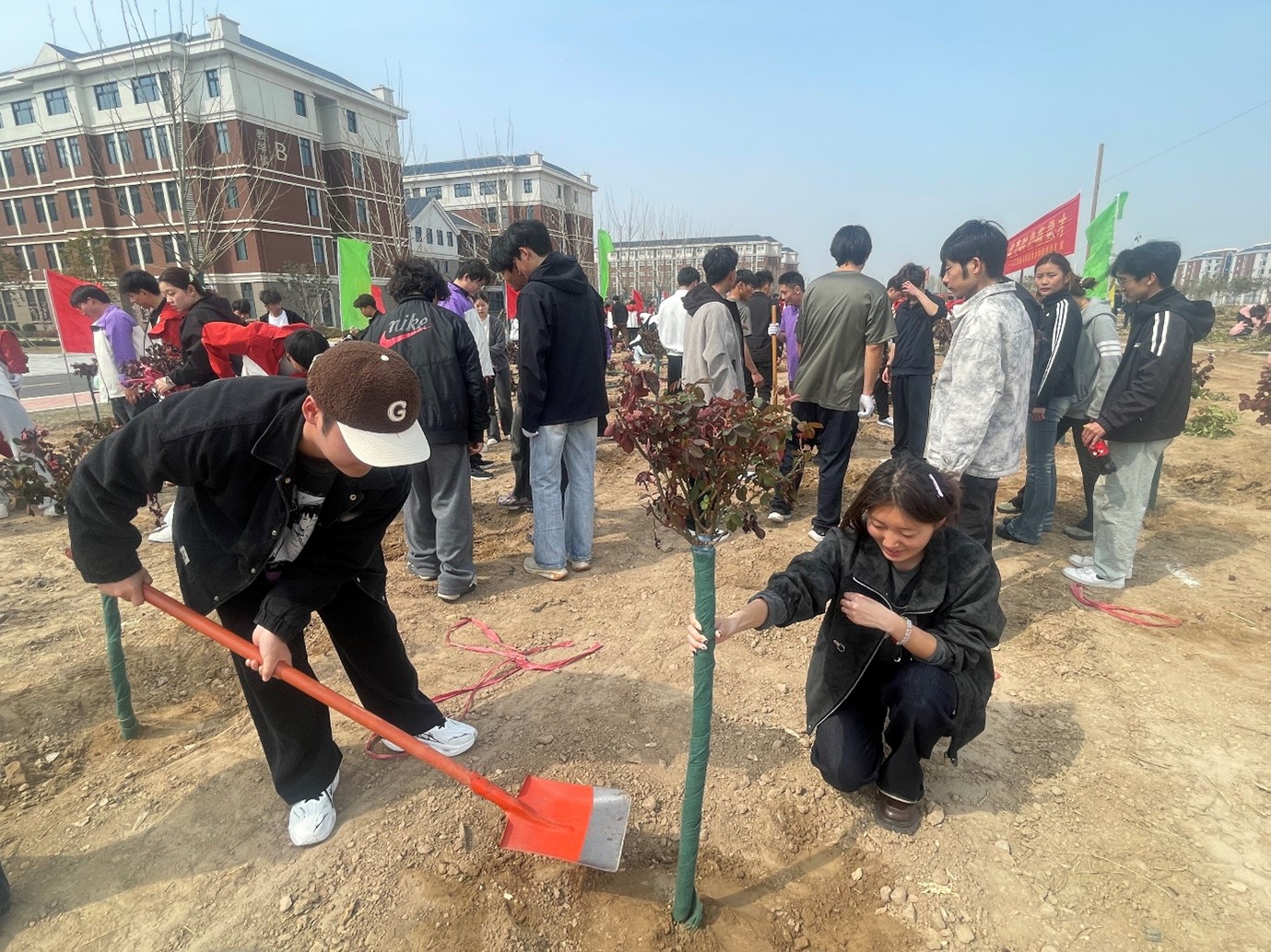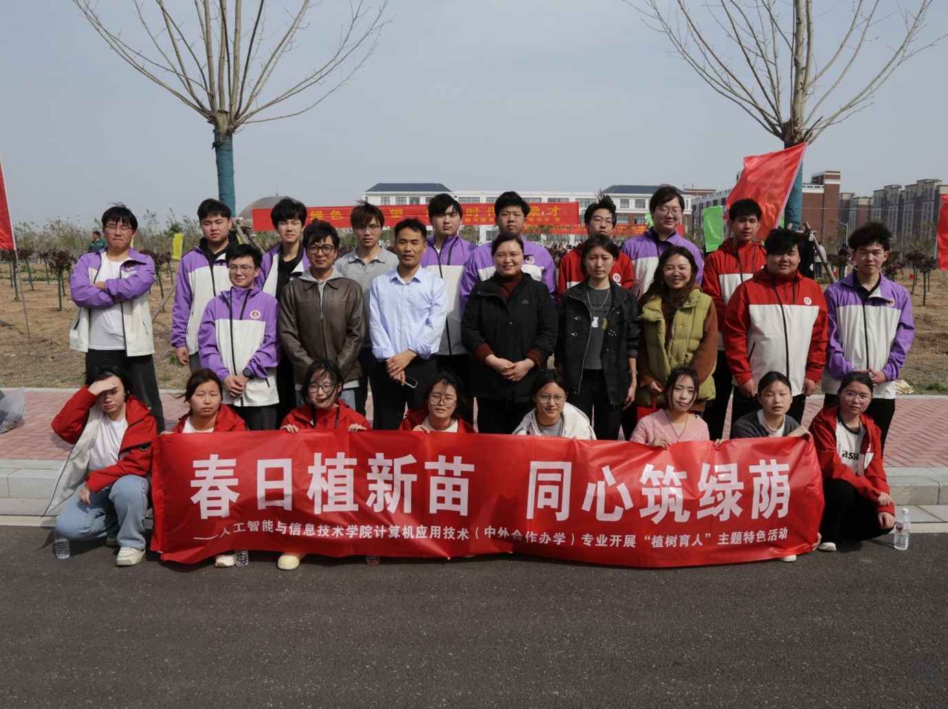 春回大地,万物复苏,正是植树添绿的好时节。为深入贯彻落实生态文明建设要求,厚植师生生态文明理念,切实践行“五育并举”育人方针,3月25日,我校统一组织开展春季植树工作,人工智能与信息技术学院计算机应用技术专业(中外合作办学)师生积极响应学校号召,主动投身活动之中,以实际行动播撒绿色希望,涵养家国情怀与责任担当,用劳动书写青春答卷。
