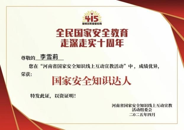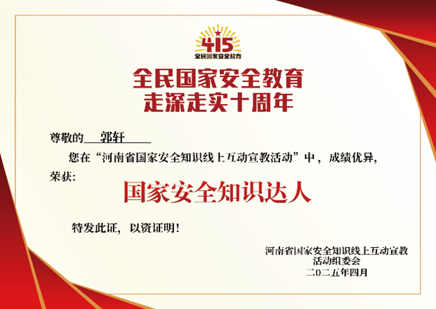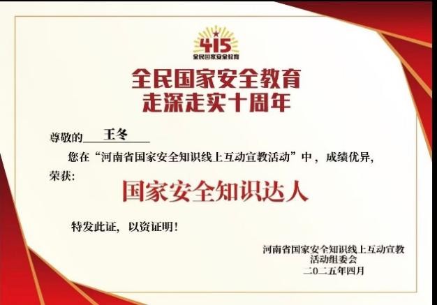 为庆祝全民国家安全教育日,同时纪念全民国家安全教育走深走实十周年,于4月18日44118太阳成城集团组织开展了“河南省国家安全知识线上互动活动”。此次活动旨在提升公众国家安全意识,营造维护国家安全的浓厚氛围。