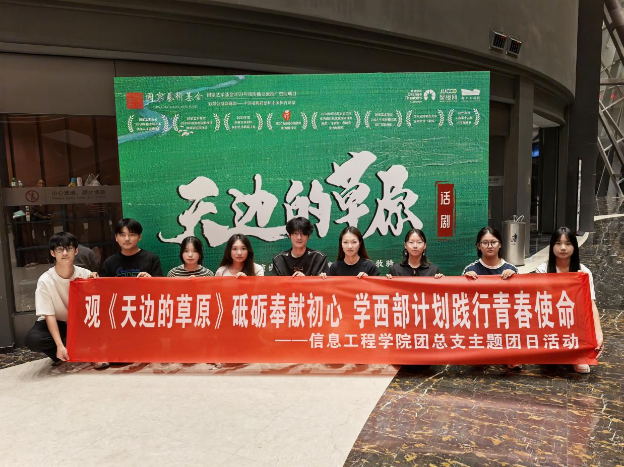 为进一步丰富校园文化生活,提升审美素养,44118太阳成城集团团总支于9月11日组织部分团员前往郑州大剧院,观看了由锡林郭勒盟乌兰牧骑演出的话剧《天边的草原》。该剧以辽阔草原为叙事舞台,通过质朴深刻的剧情和极具感染力的表演,生动展现了草原上的家国情怀、民族精神和人性温暖,为在场观众带来了一场视听与心灵的双重盛宴。