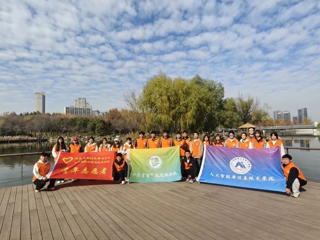 为深入践行“绿水青山就是金山银山”的生态文明理念,弘扬“奉献、友爱、互助、进步”的志愿精神,展现我院学子昂扬向上的精神风貌与社会担当,11月15日,人工智能与信息技术学院组织学生志愿者服务队,前往郑州西流湖公园,开展了一场以“以青春之名,护绿水长流”为主题的巡河护河志愿活动。